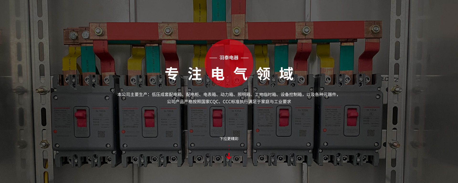 本公司坐落于人杰地靈,“中國制造之都“浙江省臺州市-黃巖。專注工業(yè)電氣領(lǐng)域,是一家集科研、生產(chǎn)、銷售為一體的較全方面型電氣企業(yè)。主要生產(chǎn):低壓成套配電箱、配電柜、電表箱、動力箱、照明箱、工地臨時箱、設(shè)備控制箱,以及各種元器件。元器件主要有:雙電源自動轉(zhuǎn)換開關(guān)、塑料外殼式斷路器、小型斷路器、漏電斷路器;隔離開關(guān)、熔斷式隔離開關(guān)等,公司產(chǎn)品嚴(yán)格按照國家CQC,CCC標(biāo)準(zhǔn)執(zhí)行,滿足于家庭與工業(yè)要求。我們秉承“電箱、元器件"一條龍服務(wù)。